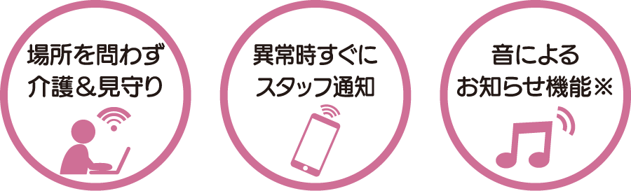 スタッフが少ない夜間時も画面で入居者の状況を把握する事が可能、効率良い介護・見守りができるので、訪問回数を減らせることになり、夜勤職員のストレス緩和や働き方改善、職員の確保スタッフの業務効率向上にも繋がります。