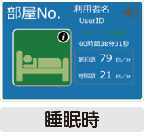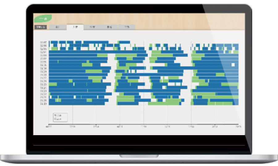 入居者の睡眠状況を把握する事によって、夜間時の見守りシフト作成の参考になります。また、睡眠と臥床状態を把握する事により、入居者の体調管理に役立ちます。